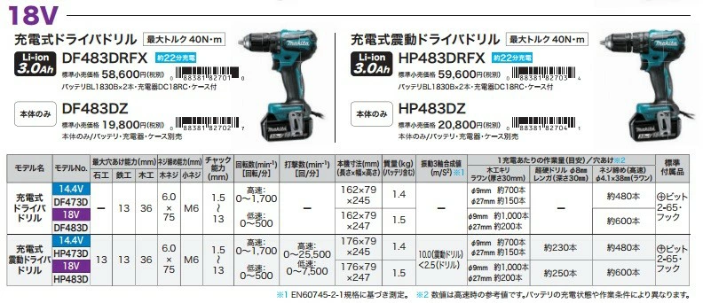 激安正規 マキタ 18V 充電式震動ドライバドリル HP483DRFX セット-電動ドリル・ドライバードリル
