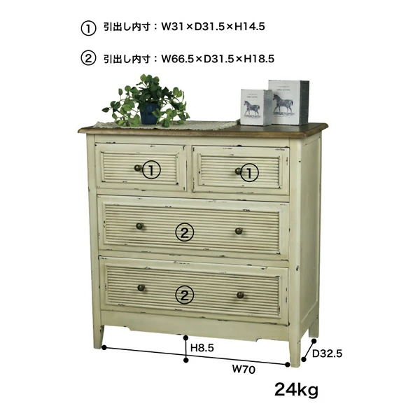 イベスタ熱販売 AZCOL011 カントリー フレンチ アンティーク ホワイト チェスト blossom-