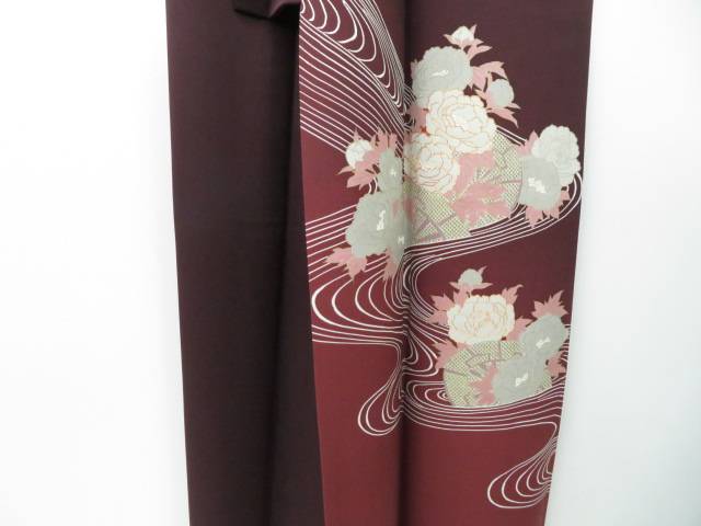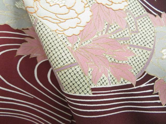 此方の商品は「リサイクル 付下げ 金駒刺繍 流水に源氏車と牡丹文 着物」でございます。